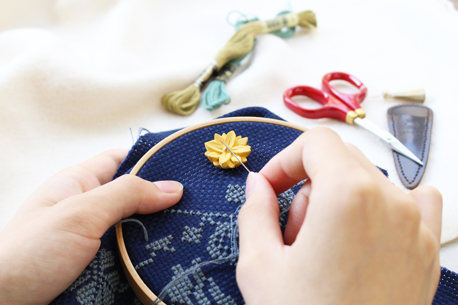 ニードルマインダーは、刺しゅうや縫い物の途中で、針を一時的に置いておける便利なアイテムです。