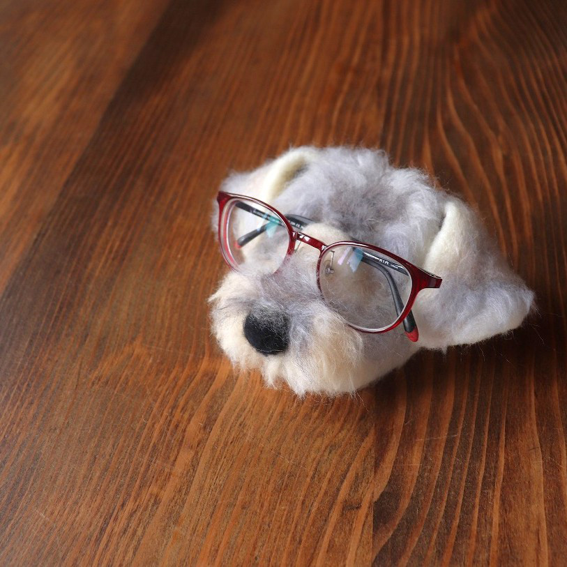 羊毛フェルトでつくられたそっくりのミニチュア作品や、めがね置きにもなるアイテムなど、温かみのあるデザインが人気です。