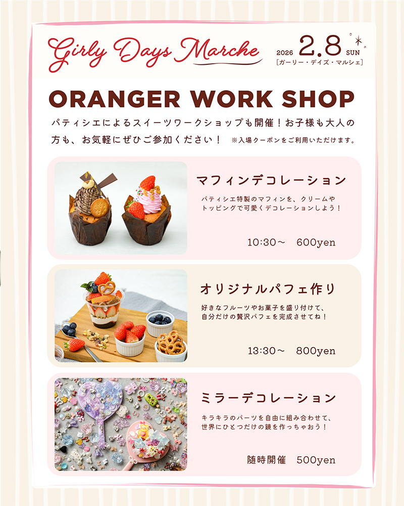 NEW <オランジェ>女の子だけでカワイイもハッピーもシェアするマルシェ「Girly Days Marche」伊勢で開催