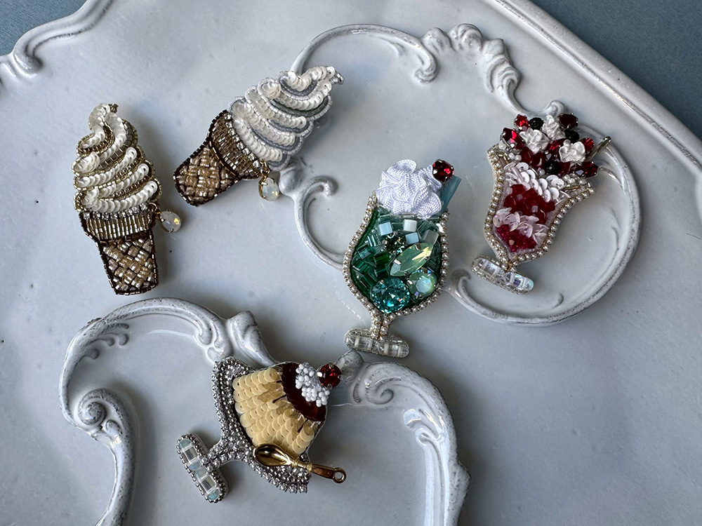 オートクチュール刺繍教室ジュネスを港区で主宰する刺繍作家〈Jeunet(ジュネ)〉。インドの伝統技法アリワークを核に、オートクチュール刺繍本来の繊細さと高度な技法を装いと暮らしに寄り添うデザインへと昇華します。多彩なビーズやパーツを組み合わせたアクセサリーは、豊かな立体感と洗練された印象が魅力。本展では、本格的な手仕事と日常の華やぎを同時に叶える作家ならではのアクセサリーキットをラインナップし、制作のこだわりや仕立ての美しさをご紹介いたします。