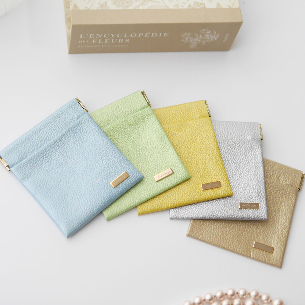 自分の好きな色の本革を選んで縫わずに作る、ばねポーチの体験講座です。
