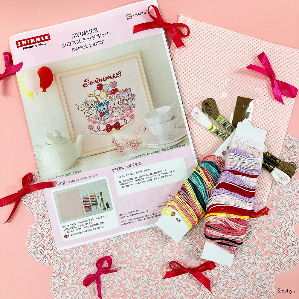 SWIMMERの人気キャラクター、くまの「ハグリー」、ねこの「キャミー」、うさぎの「リバニー」、ひつじの「ラッフィー」をそれぞれ作れる「パンチニードルキット」と、パーティデザインの「クロスステッチキット」です。”かわいいがぎゅっ!”とつまったハンドメイドキットをぜひお楽しみください♡